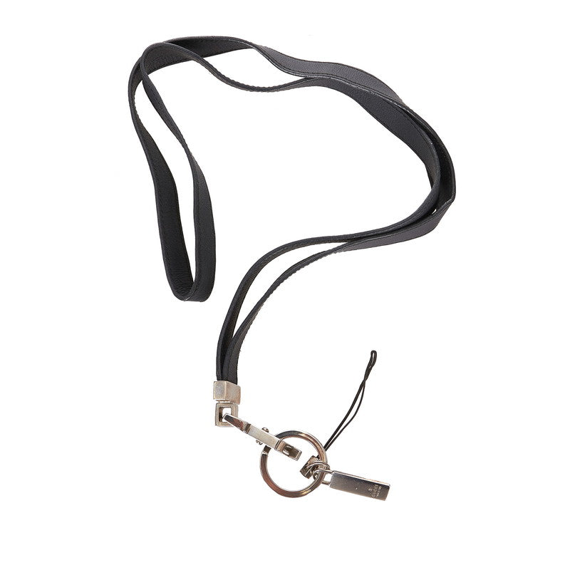グッチ ブラック シルバー レザー メタル 携帯ストラップ ネックストラップ レディース GUCCI 【中古】