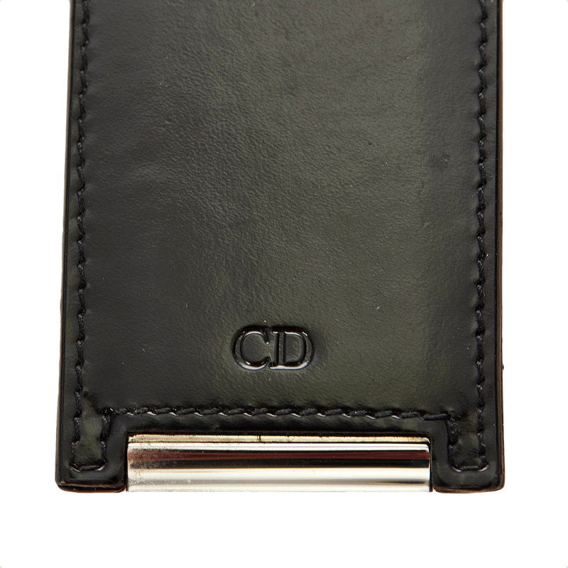 クリスチャンディオール ブラック シルバー レザー メタル キーホルダー レディース Christian Dior 【中古】