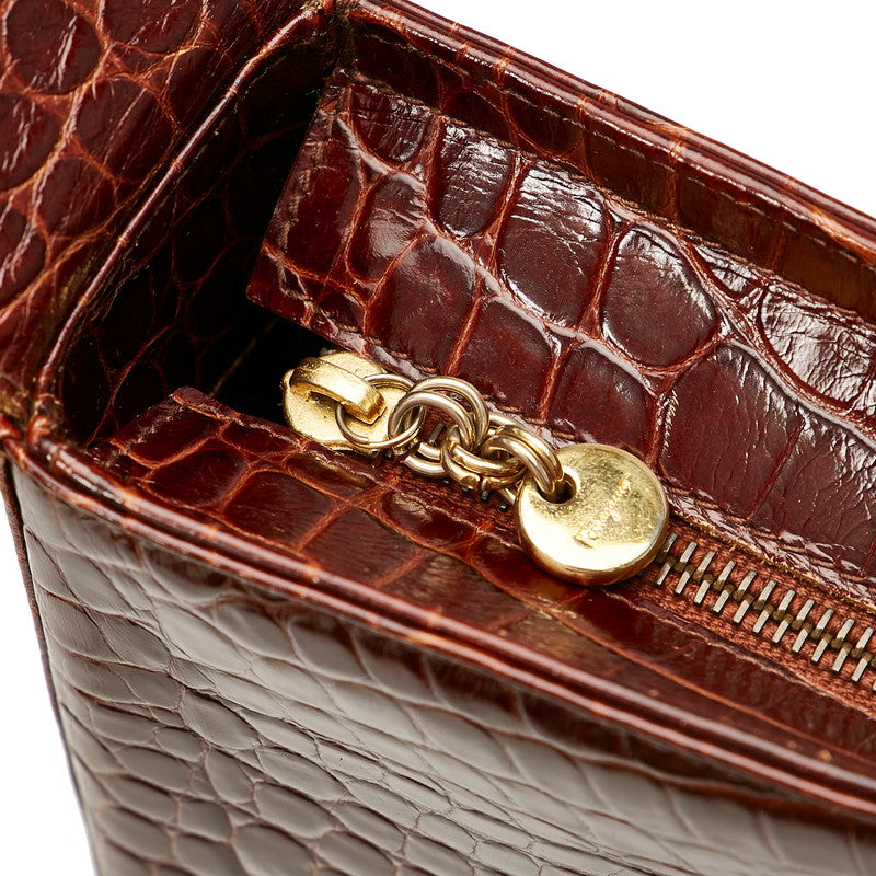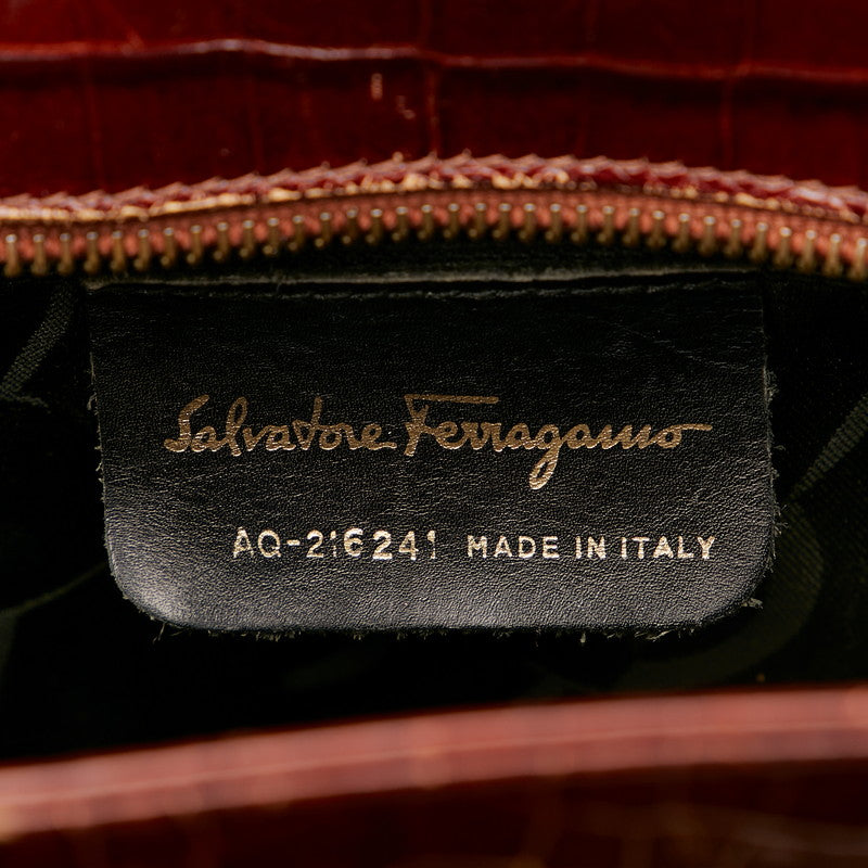 サルヴァトーレフェラガモ AQ21 6241 ブラウン 型押しレザー ショルダーバッグ レディース Salvatore Ferragamo 【中古】
