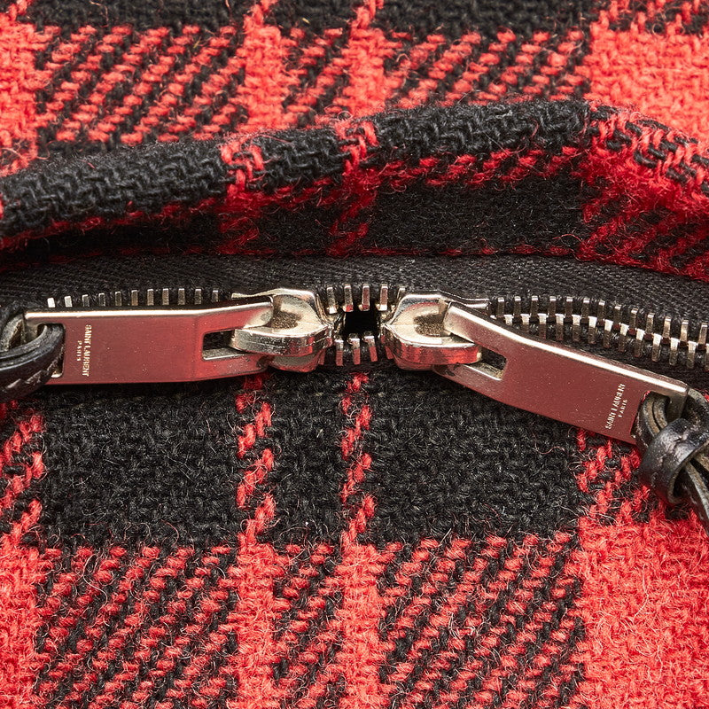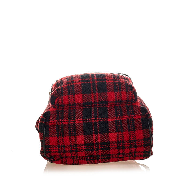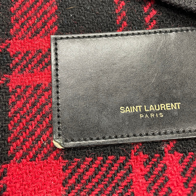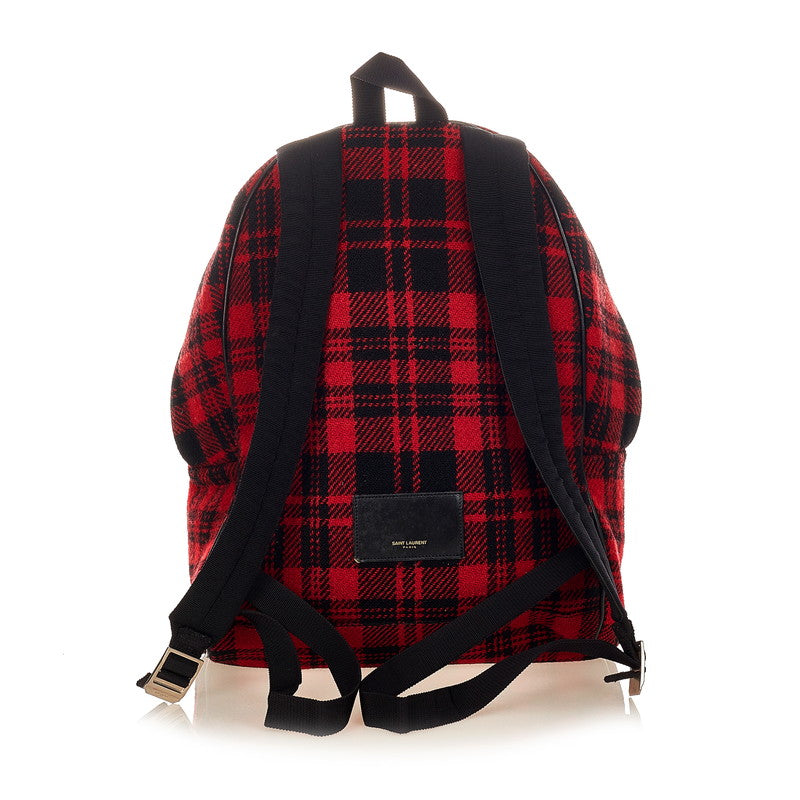 サンローラン チェック レッド ウール レザー リュック バックパック レディース SAINT LAURENT 【中古】