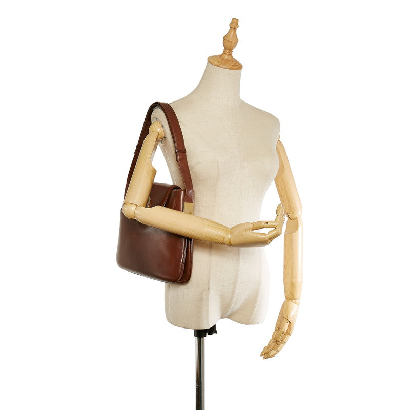 グッチ オールドグッチ ブラウン レザー ショルダーバッグ レディース GUCCI 【中古】