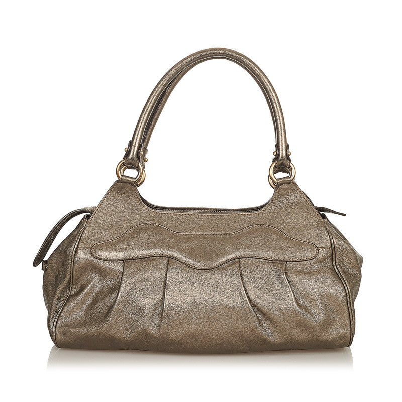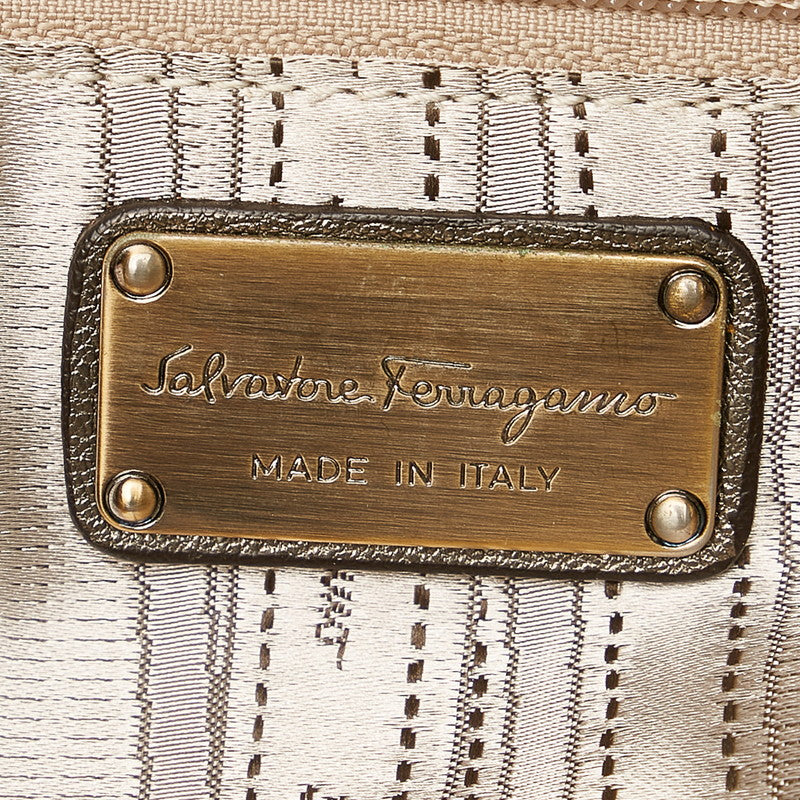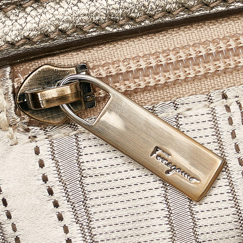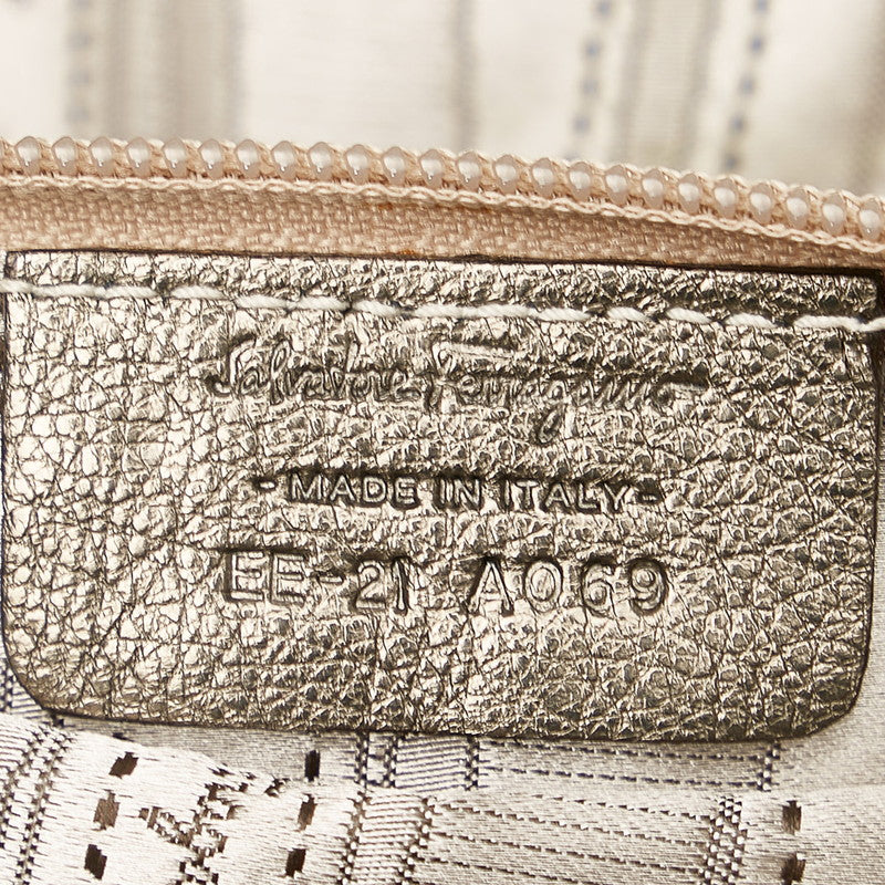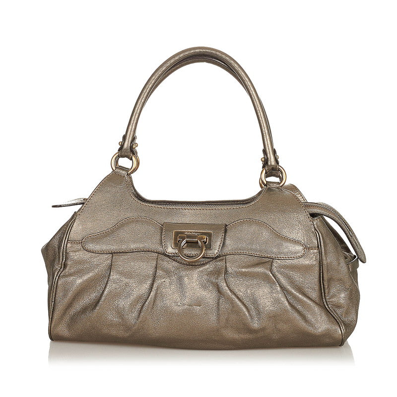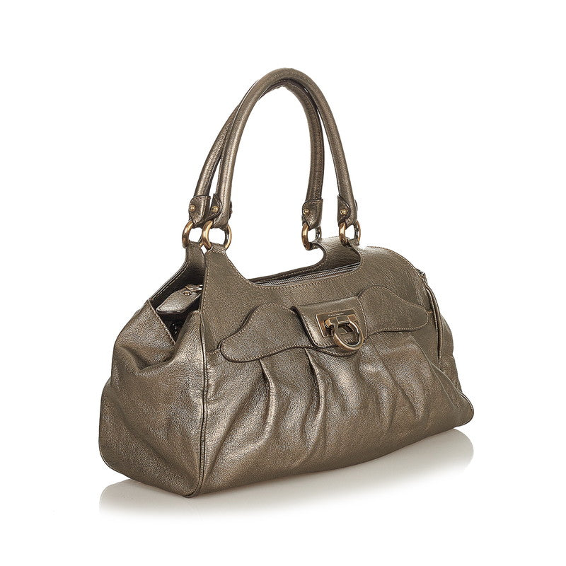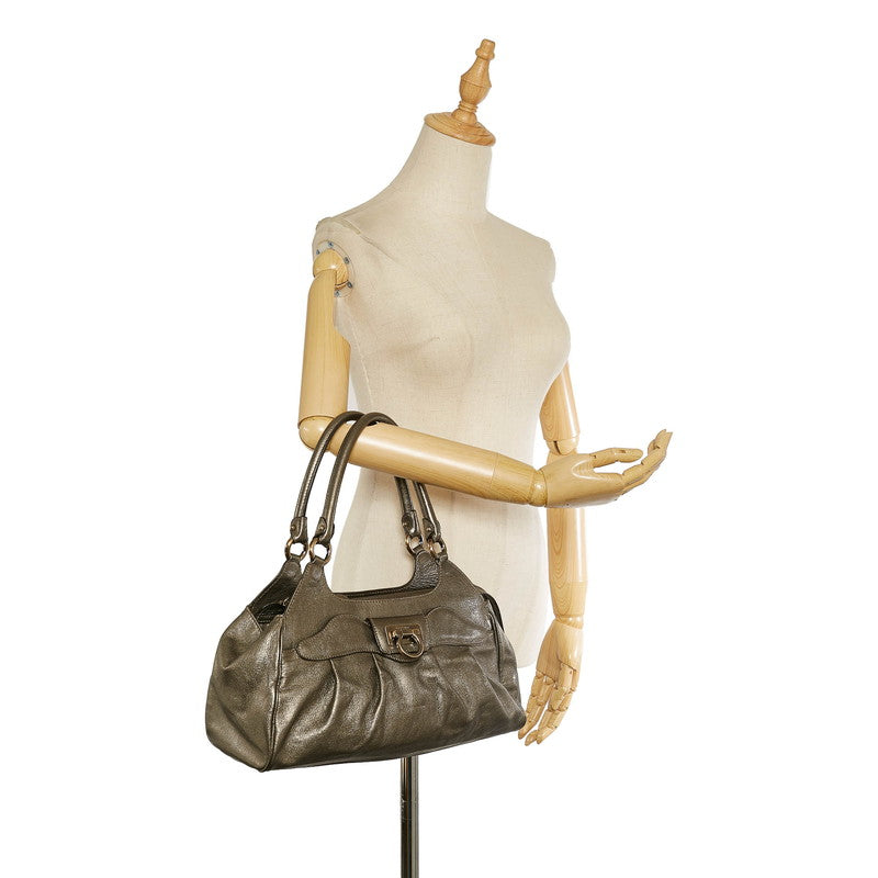 サルヴァトーレフェラガモ ガンチーニ EE21-A069 メタリックブラック グレー レザー トートバッグ レディース Salvatore Ferragamo 【中古】