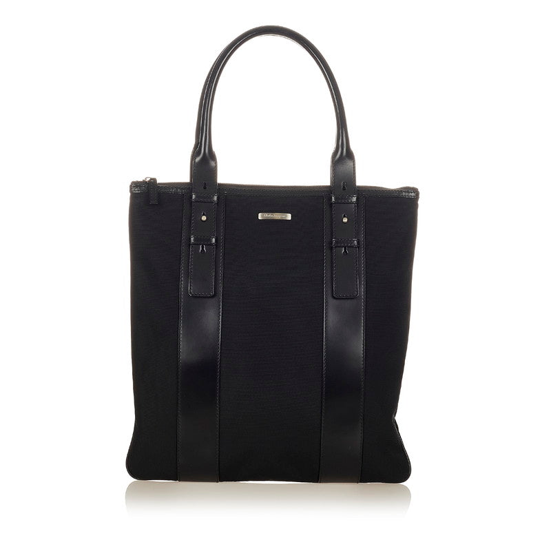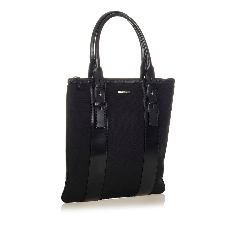 サルヴァトーレフェラガモ トートバッグ AU-24 6537 ブラック ナイロン レザー レディース Salvatore Ferragamo 【中古】