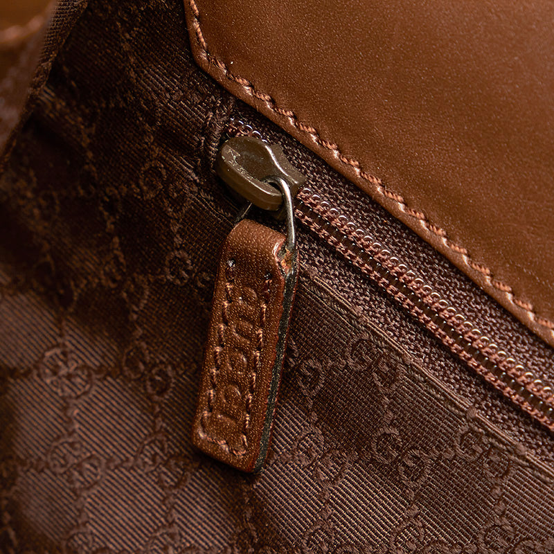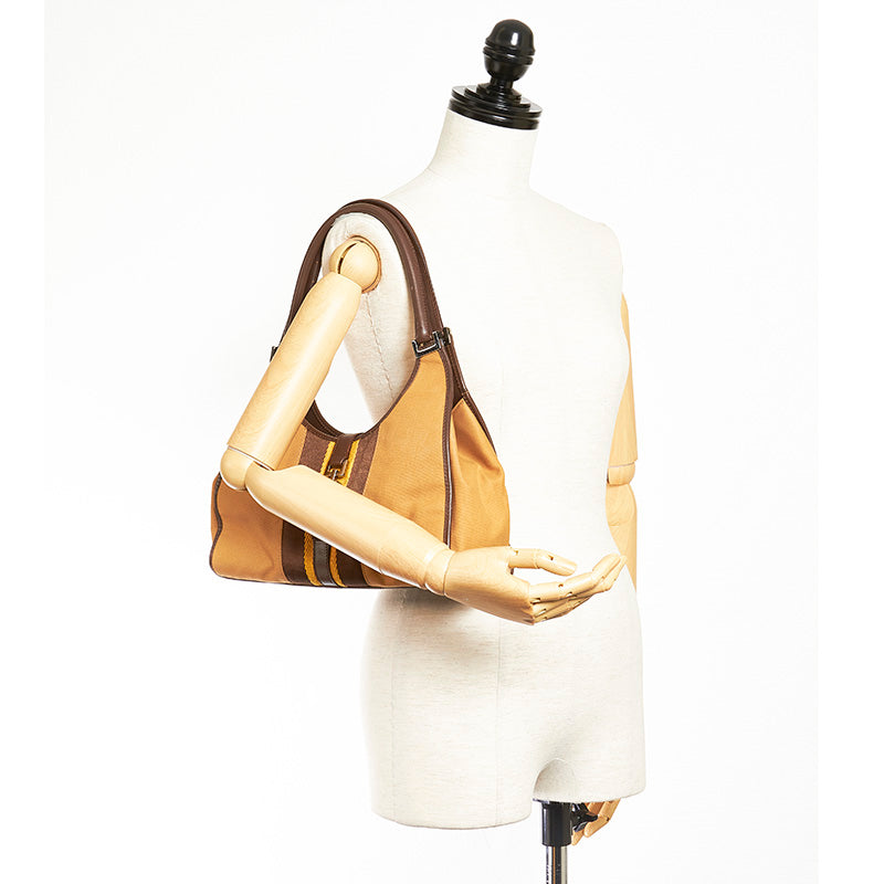 グッチ ジャッキー 002 1067 ベージュ ブラウン キャンバス レザー ショルダーバッグ レディース GUCCI 【中古】