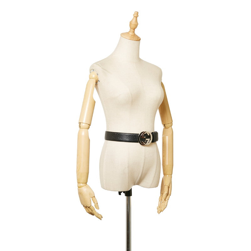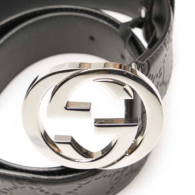 グッチ グッチシマ 411924 ブラック レザー ベルト メンズ GUCCI 【中古】
