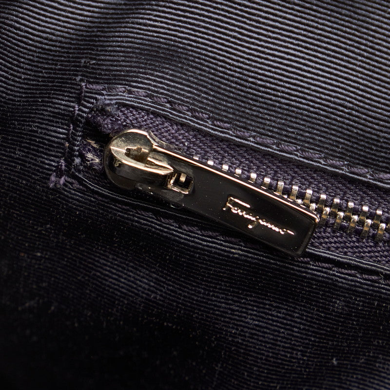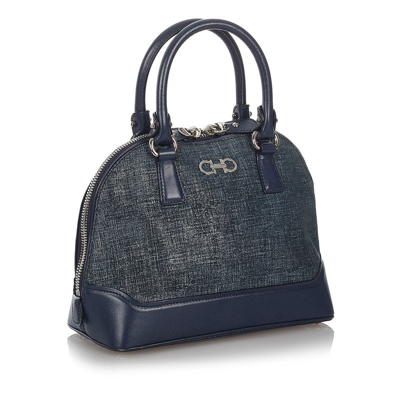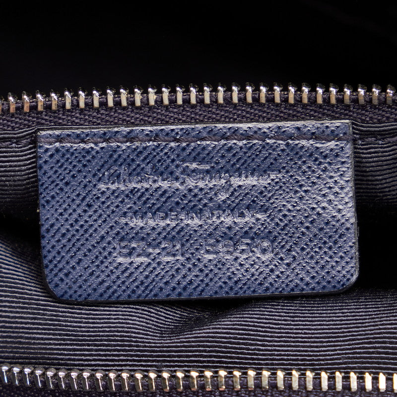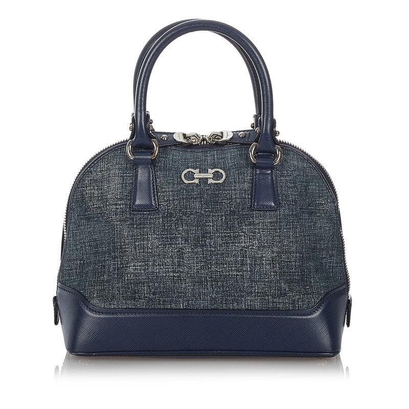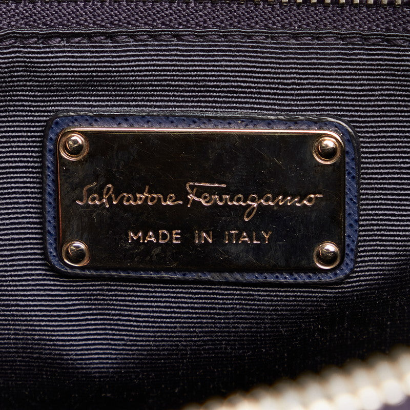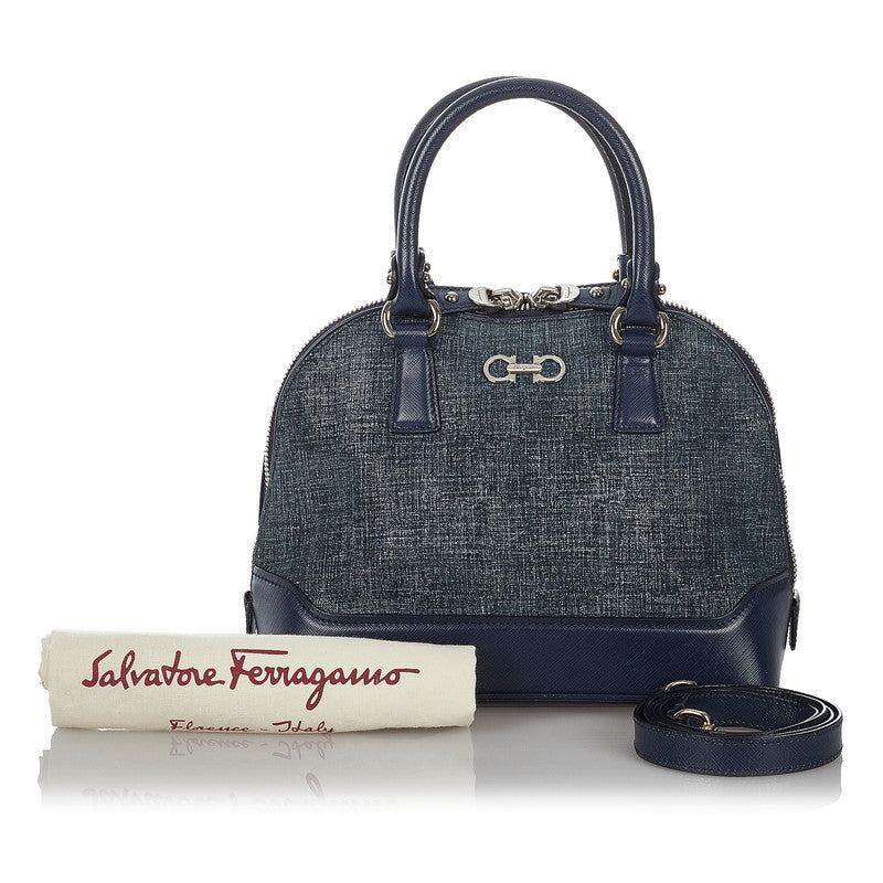 サルヴァトーレフェラガモ ダブルガンチーニ ハンドバッグ ショルダーバッグ 2Way EZ-21 E950 ネイビー キャンバス レザー レディース Salvatore Ferragamo 【中古】