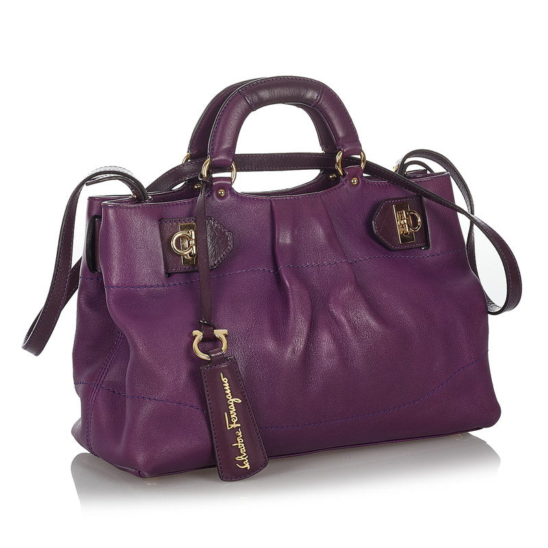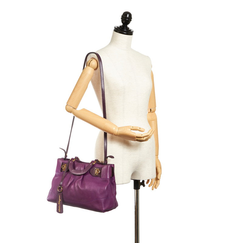 サルヴァトーレフェラガモ ガンチーニ ハンドバッグ ショルダーバッグ 2WAY DY-21 D313 パープル レザー レディース Salvatore Ferragamo 【中古】