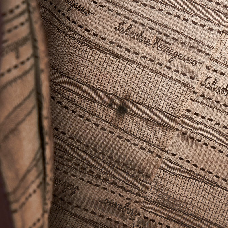 金具に小キズ、外側の所々にキズ・スレ、底部に角スレ・目立つシミ、内側にヨゴレ・黒ズミはありますが、比較的キレイな商品です。 |