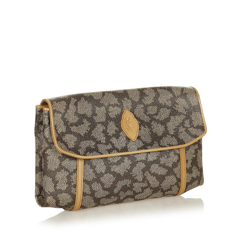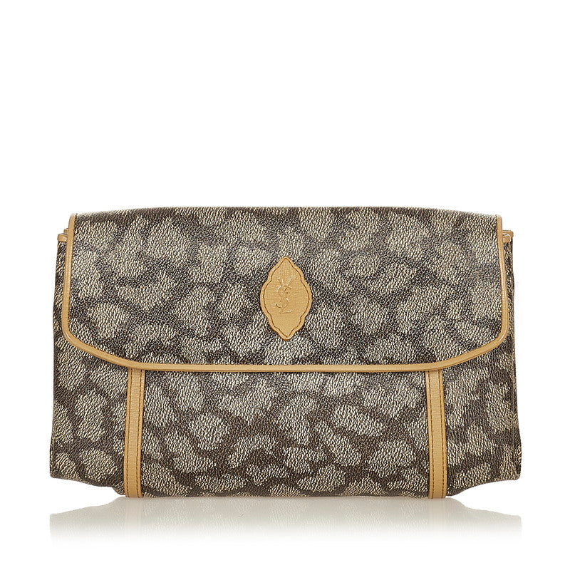 サンローラン ブラウン ベージュ PVC レザー クラッチバッグ レディース SAINT LAURENT 【中古】