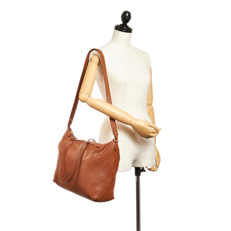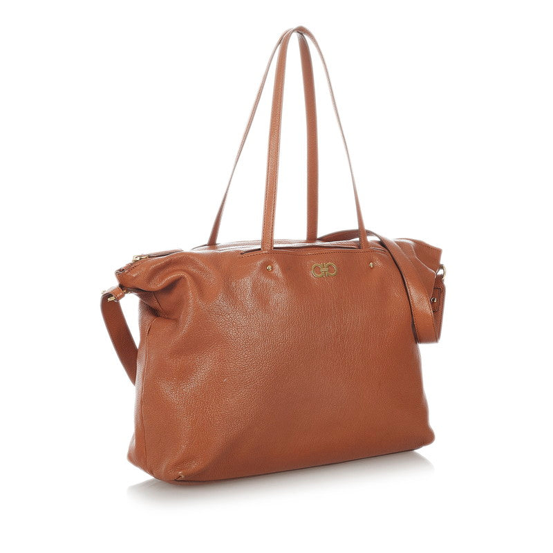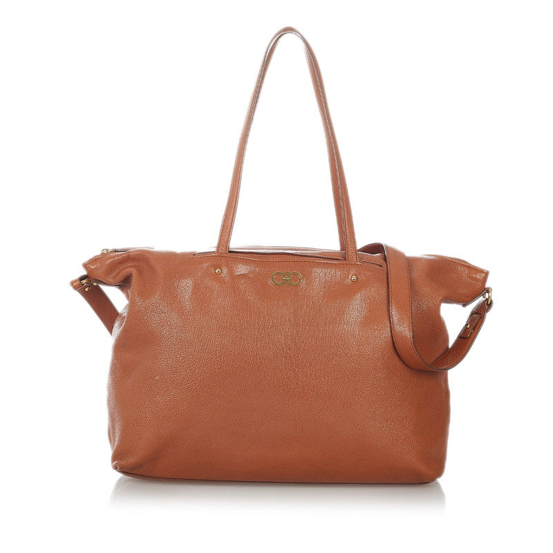 サルヴァトーレフェラガモ ダブルガンチーニ トートバッグ ショルダーバッグ2way AB-21 F651 ブラウン レザー レディース Salvatore Ferragamo 【中古】