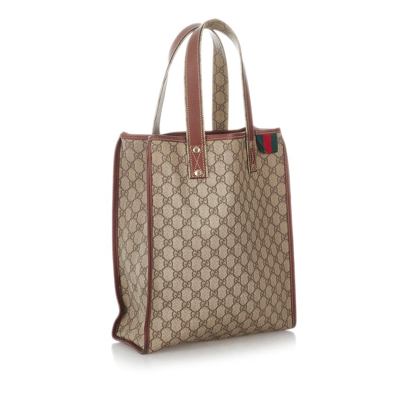 グッチ GGスプリーム シェリー 211135 ベージュ ブラウン PVC レザー トートバッグ レディース GUCCI 【中古】
