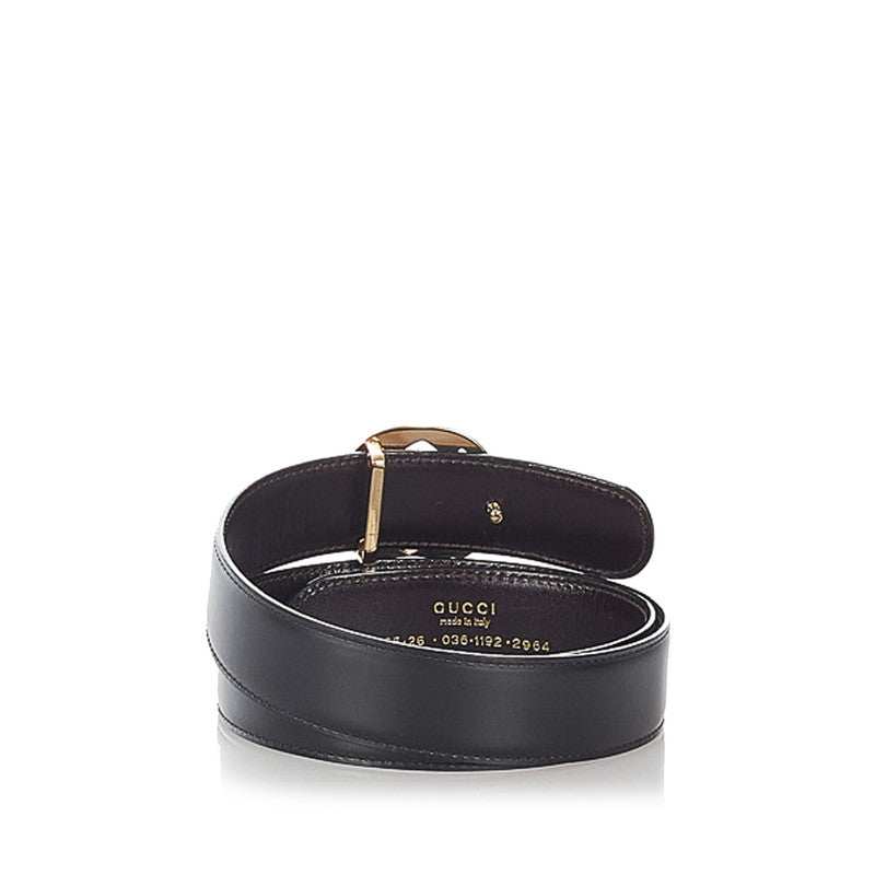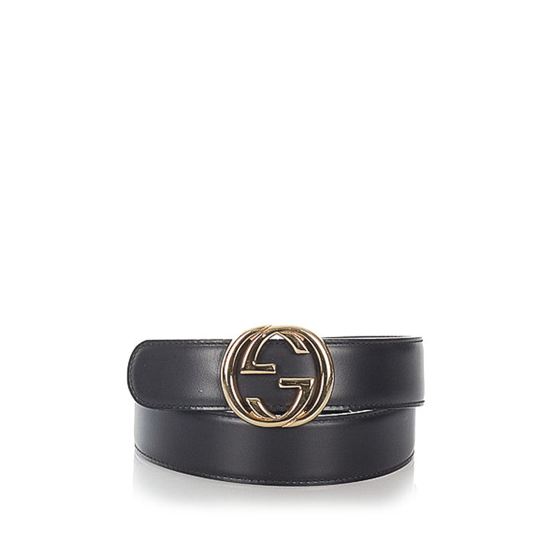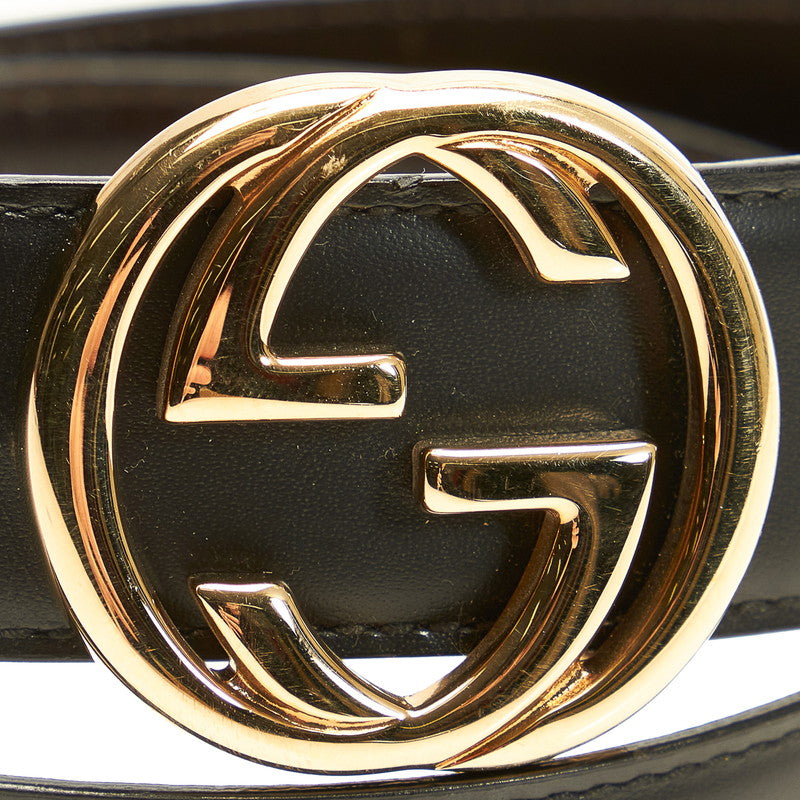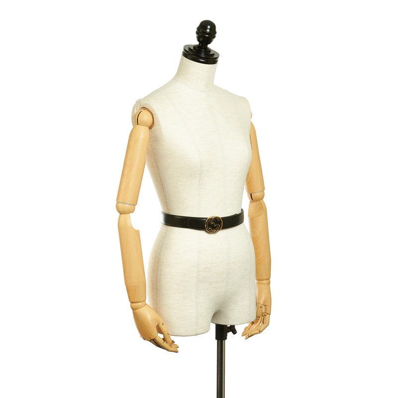 グッチ ミスGG インターロッキング 036 1192 2964 ブラック ゴールド レザー ベルト レディース GUCCI 【中古】