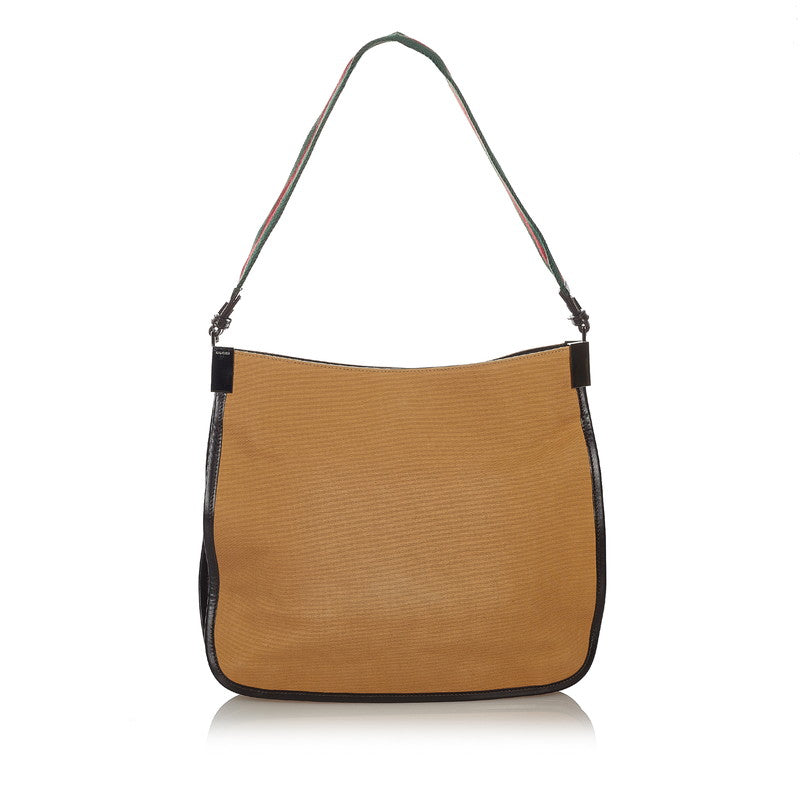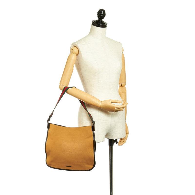 グッチ シェリーライン 001 4321 2684 ベージュ キャンバス レザー ワンショルダー レディース GUCCI 【中古】