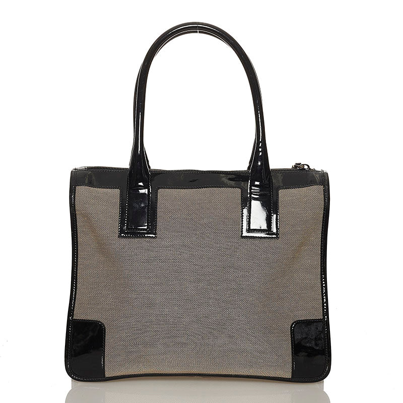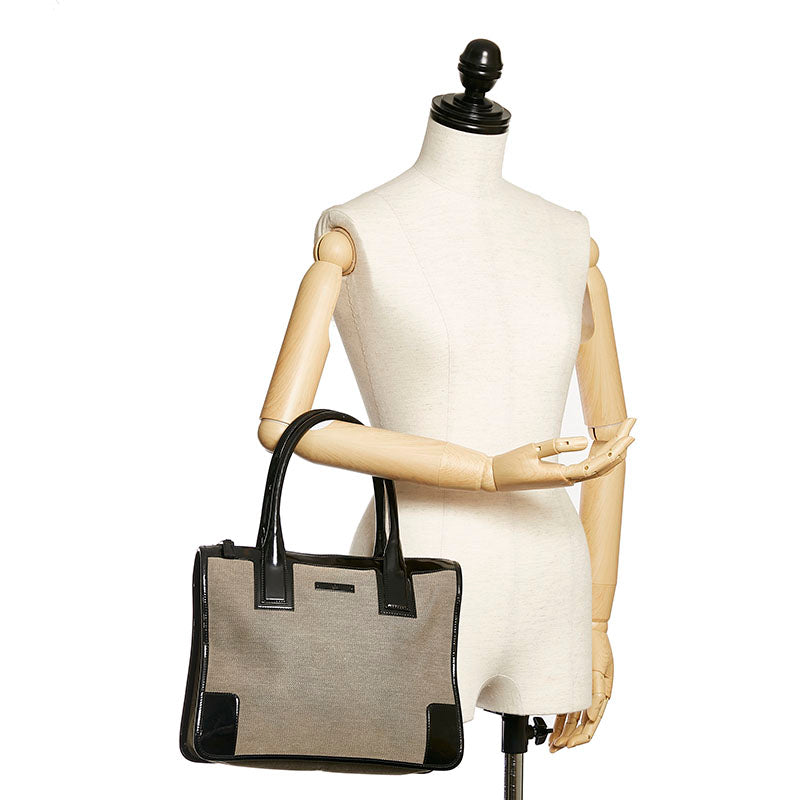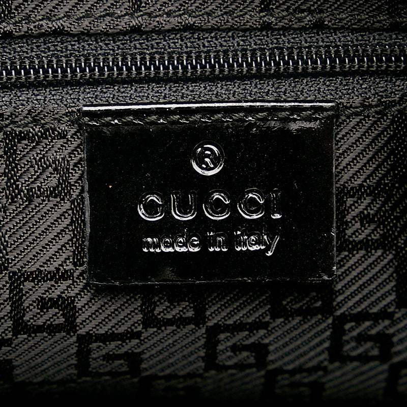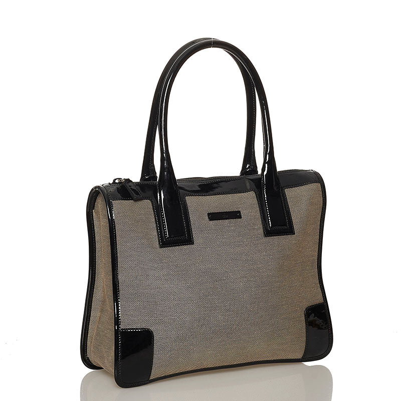 グッチ 000-0855 ベージュ ブラック キャンバス パテントレザー ハンドバッグ レディース GUCCI 【中古】