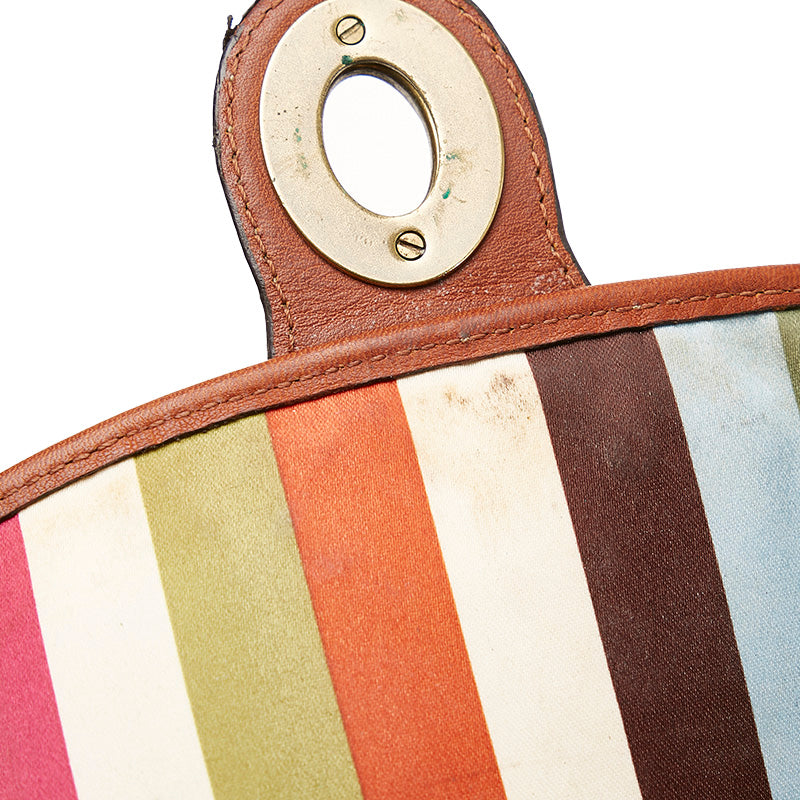 外側にスレ・角スレ・線キズ・汚れ、ショルダーに汚れ・黒ずみ、金具にサビ・メッキはがれ、外ポケットに汚れなどダメージが見られますが使用に問題はございません。 |