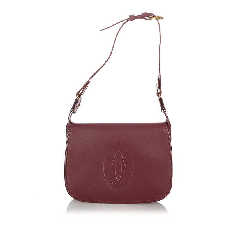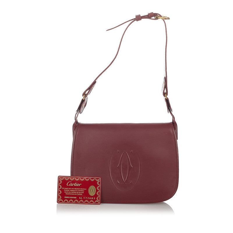 カルティエ マスト LL173603 ワインレッド レザー ショルダーバッグ レディース CARTIER 【中古】