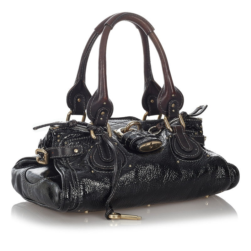 クロエ パディントン ブラック エナメル レザー ハンドバッグ レディース Chloe 【中古】