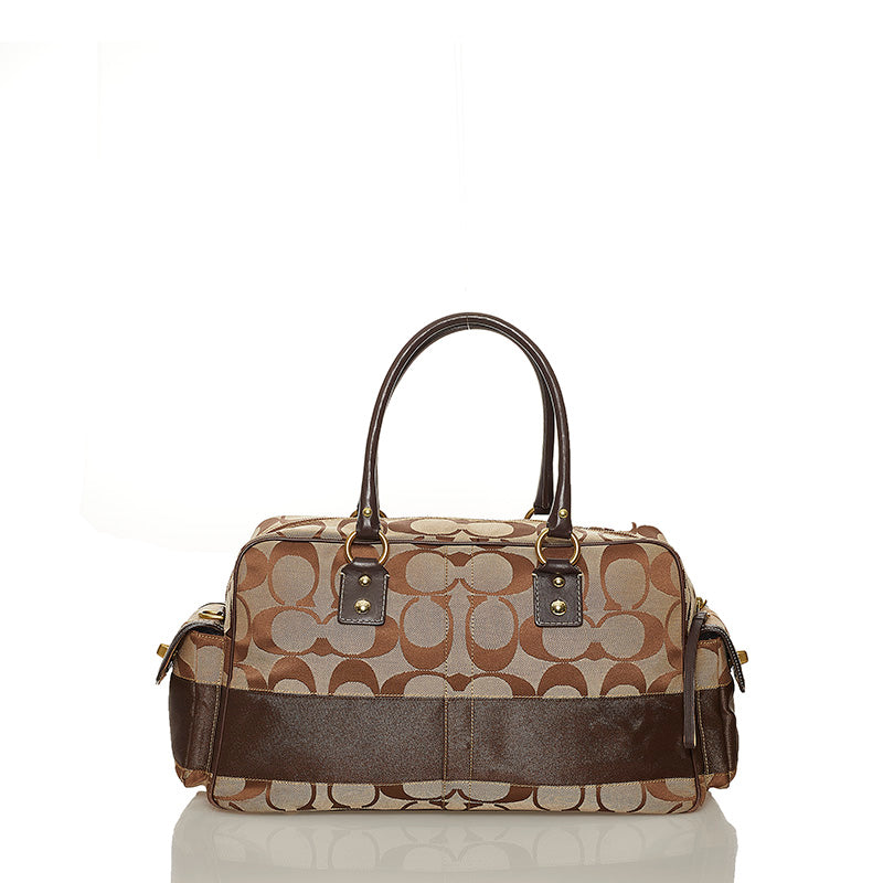コーチ シグネチャー ボストンバッグ 10392 ベージュ ブラウン キャンバス レザー レディース COACH 【中古】