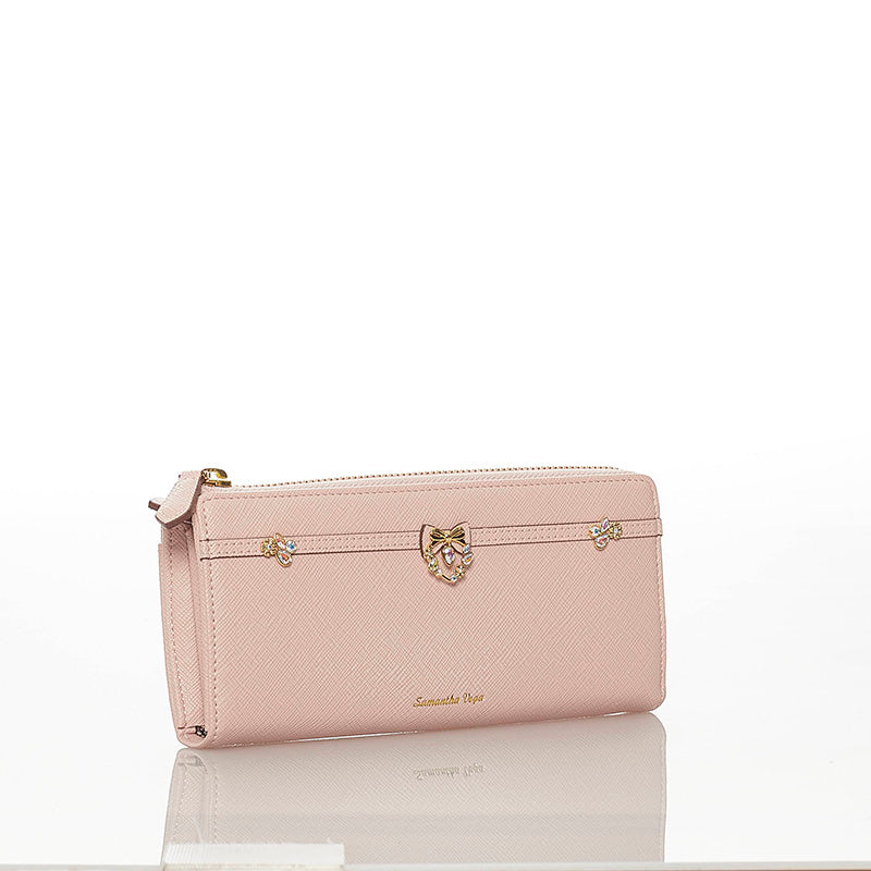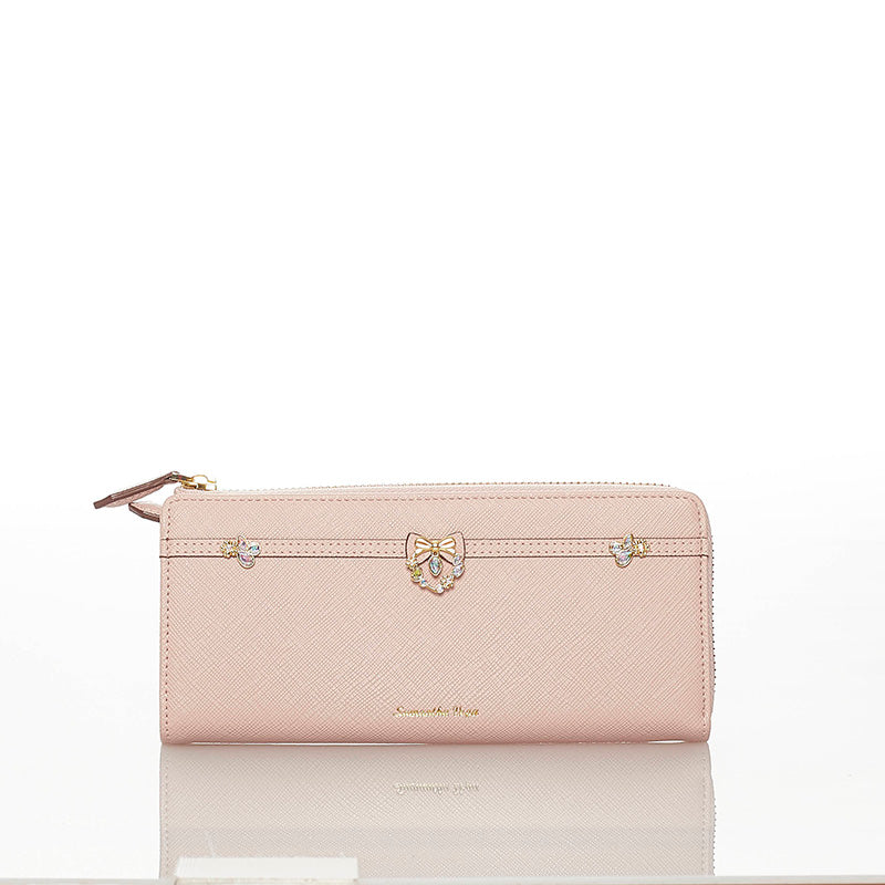 サマンサタバサ ピンク レザー ラウンドファスナー 長財布 レディース Samantha Thavasa 【中古】