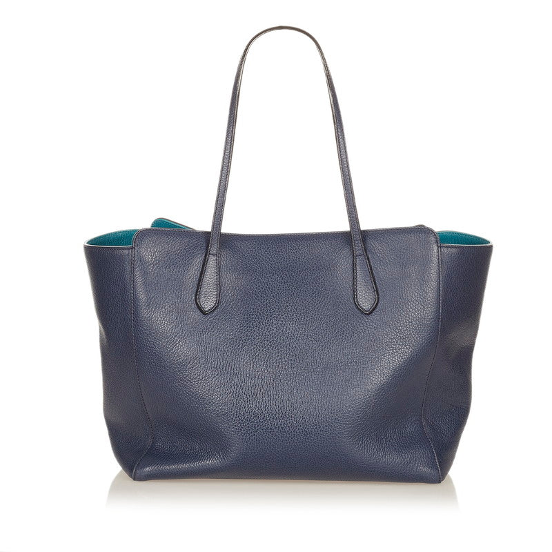 グッチ スウィング 354397 ネイビー レザー トートバッグ レディース GUCCI 【中古】