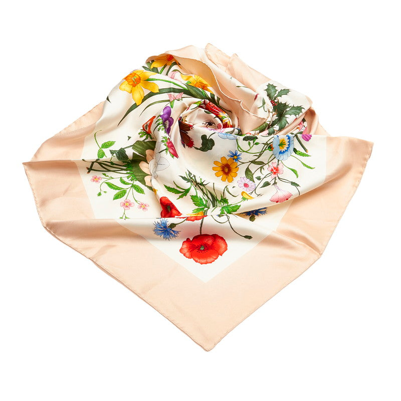 グッチ フローラ フラワー 花柄 マルチカラー シルク スカーフ レディース GUCCI 【中古】