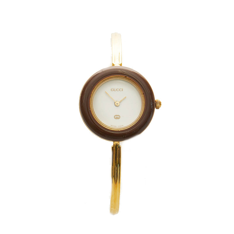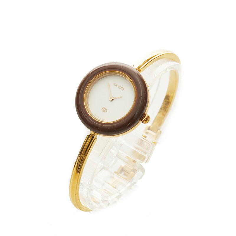 グッチ チェンジベゼル メッキ 腕時計 レディース GUCCI クオーツ ホワイト文字盤 【中古】