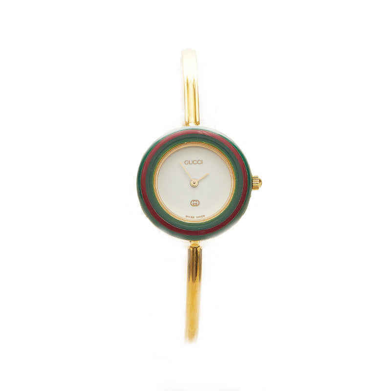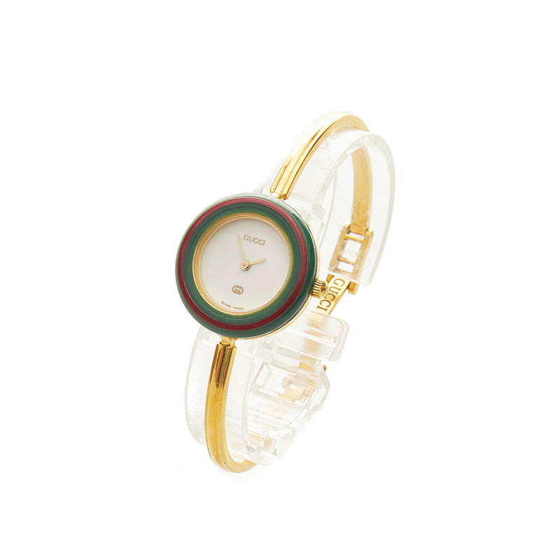 グッチ チェンジベゼル メッキ 腕時計 レディース GUCCI クオーツ ホワイト文字盤 【中古】