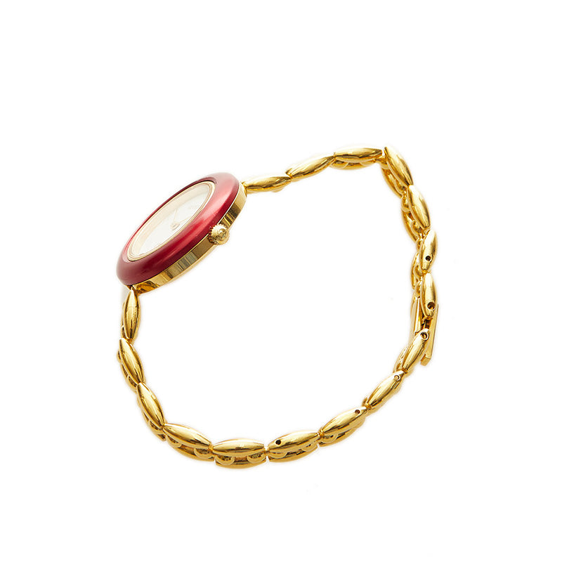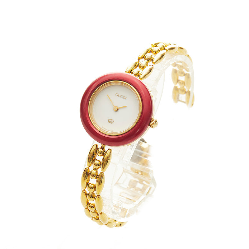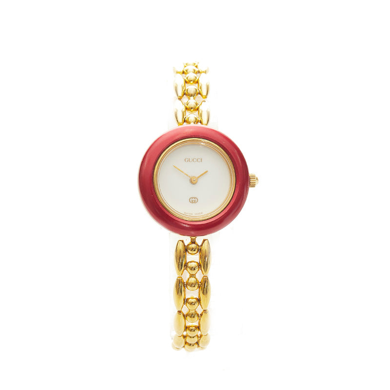 グッチ チェンジベゼル メッキ 腕時計 レディース GUCCI クオーツ ホワイト文字盤 【中古】
