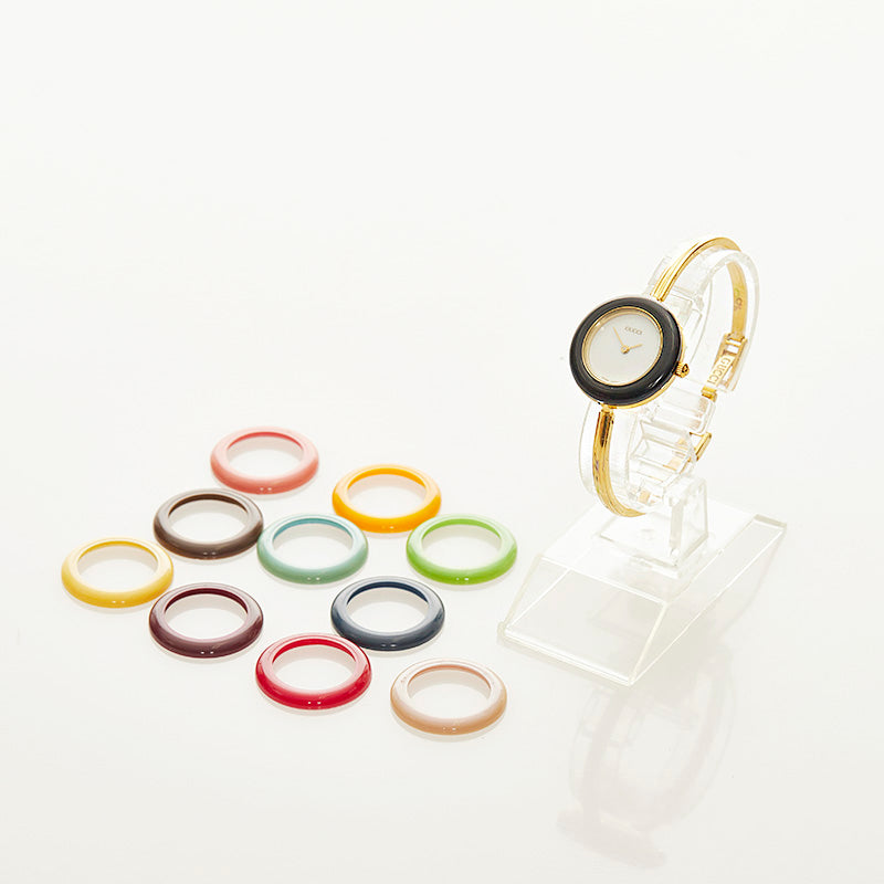 グッチ チェンジベゼル メッキ 腕時計 レディース GUCCI クオーツ ホワイト文字盤 【中古】