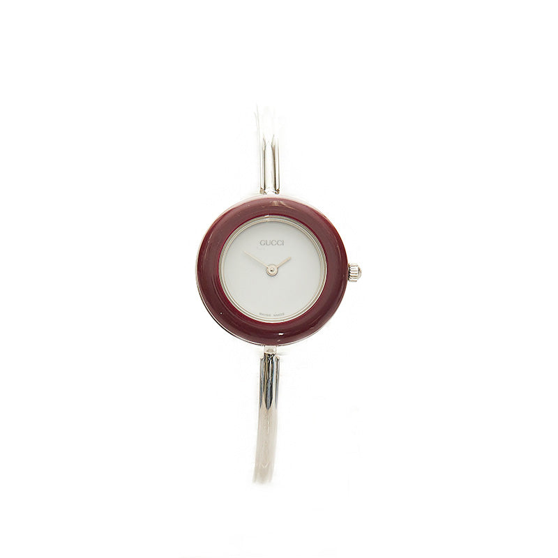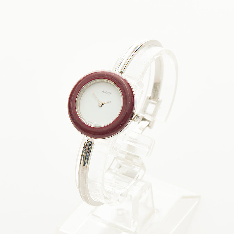 グッチ チェンジベゼル メッキ 腕時計 レディース GUCCI クオーツ ホワイト文字盤 【中古】