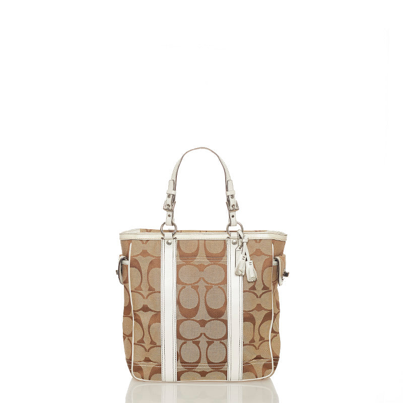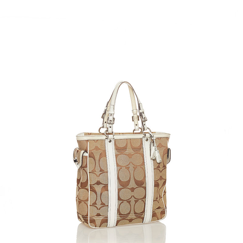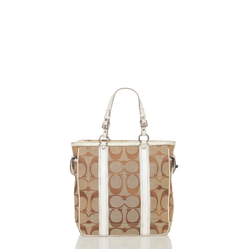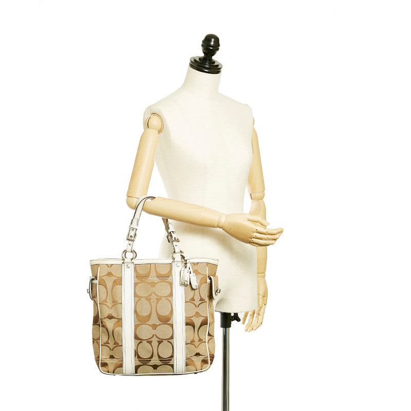 コーチ シグネチャー トートバッグ ベージュ キャンバス レザー レディース COACH 【中古】