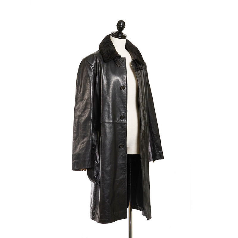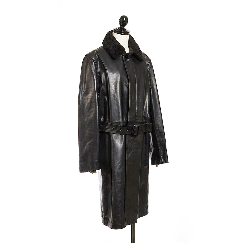 コーチ ブラック レザー ステンカラーコート メンズ COACH 【中古】