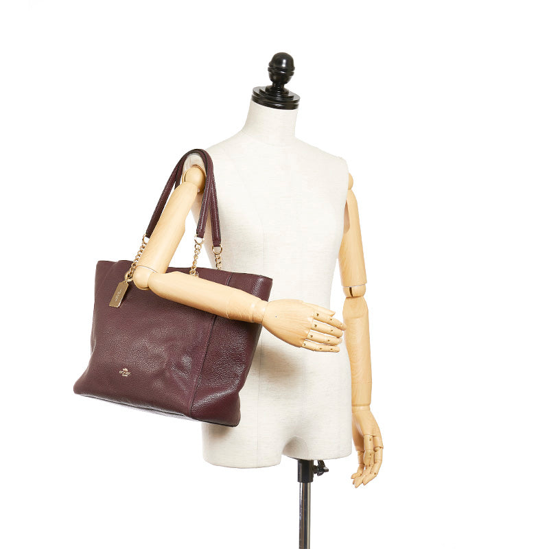 コーチ 56830 ワインレッド レザー チェーン トートバッグ レディース COACH 【中古】