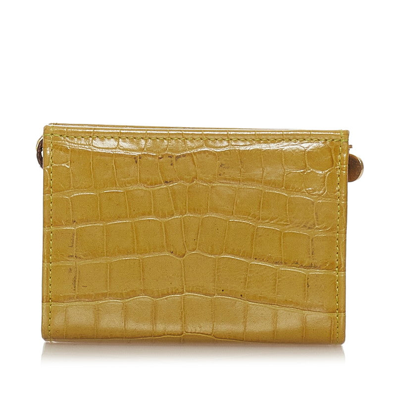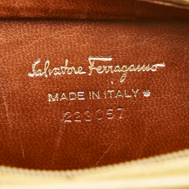 サルヴァトーレフェラガモ ヴァラリボン ポーチ グリーン 型押しレザー レディース Salvatore Ferragamo 【中古】