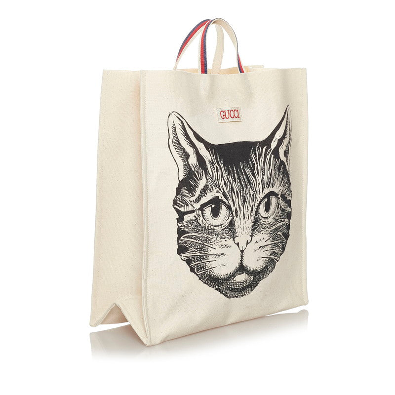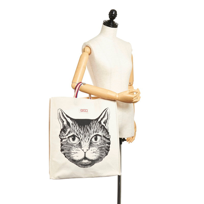 グッチ キャット 484690 ベージュ アイボリー キャンバス トートバッグ レディース GUCCI 【中古】