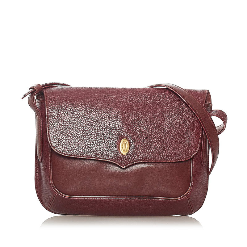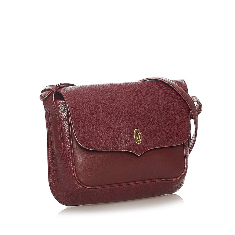 カルティエ マスト 斜め掛け ショルダーバッグ ワインレッド レザー レディース CARTIER 【中古】