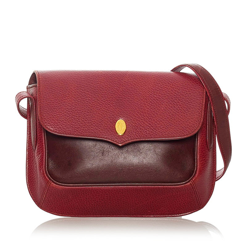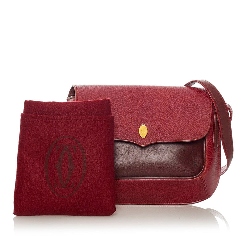 カルティエ マスト 斜め掛け ショルダーバッグ ワインレッド レザー レディース CARTIER 【中古】