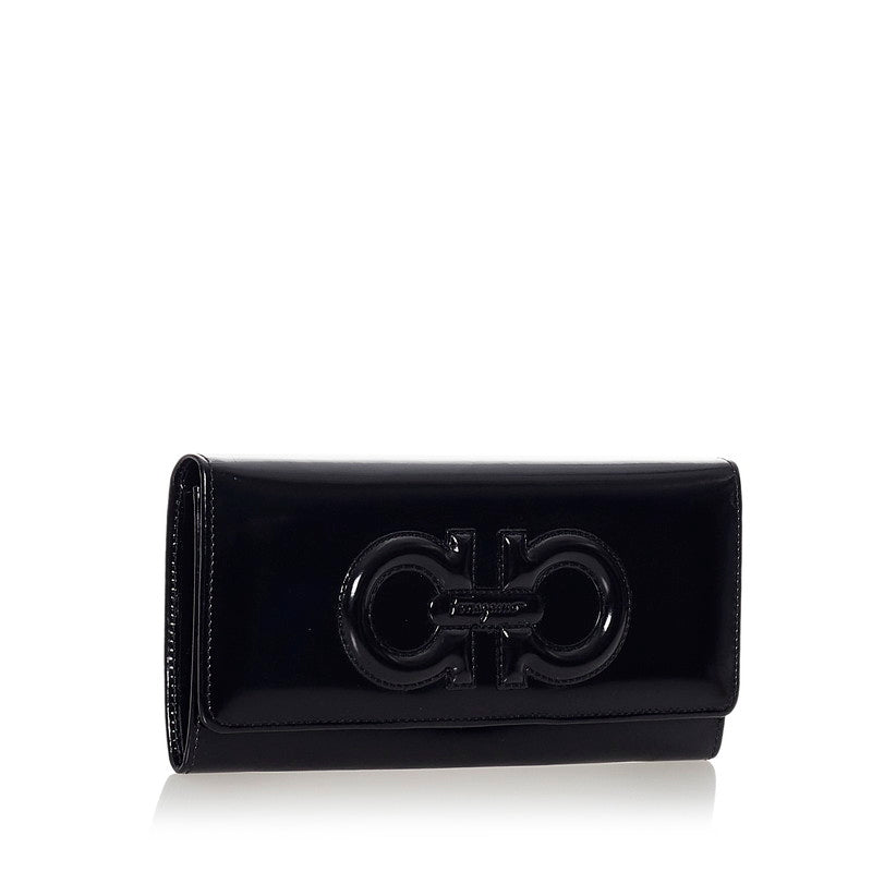 サルヴァトーレフェラガモ ダブルガンチーニ ブラック レザー 長財布 レディース Salvatore Ferragamo 【中古】