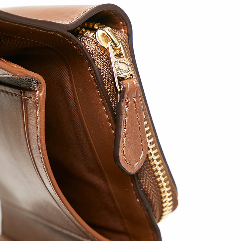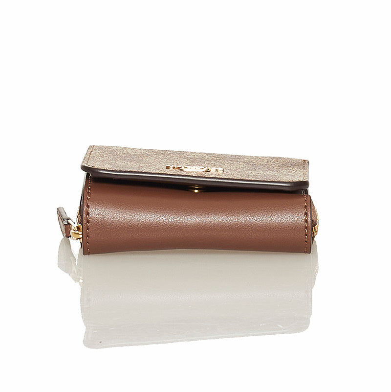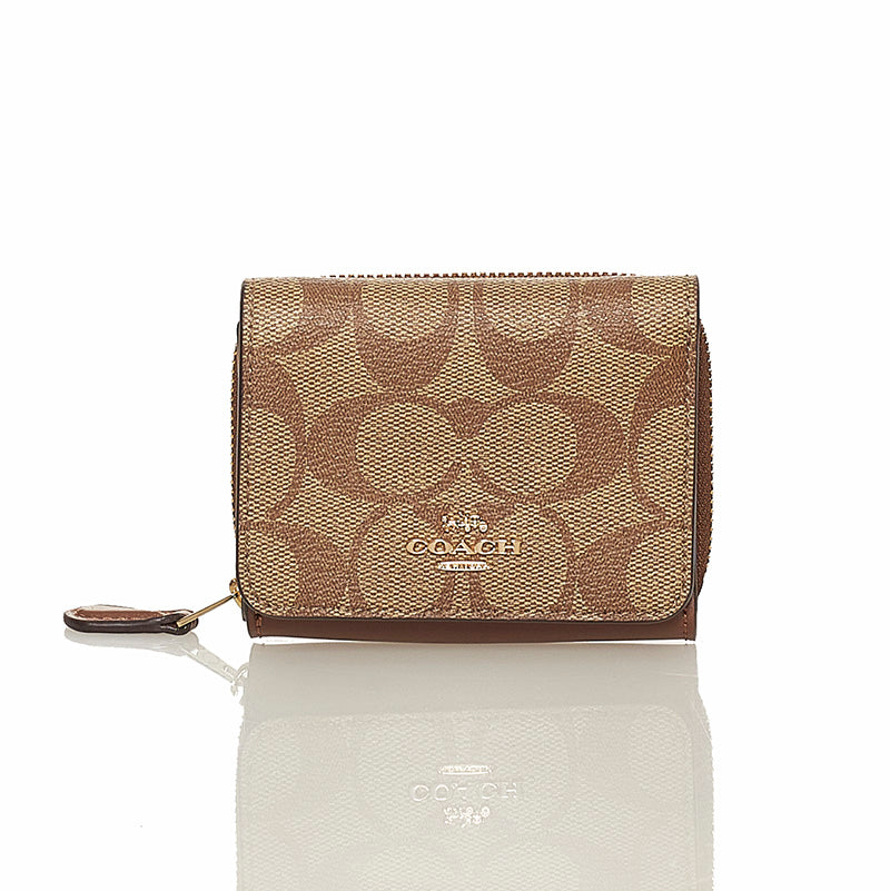 コーチ シグネチャー 三つ折り財布 ブラウン ベージュ PVC レザー レディース COACH 【中古】