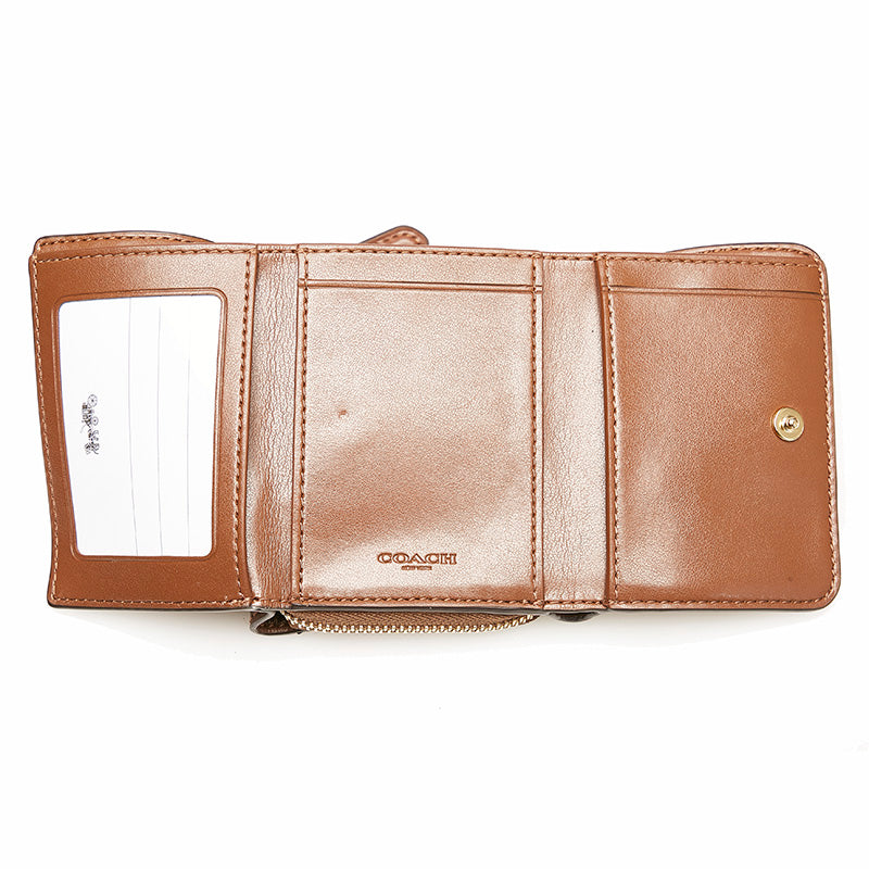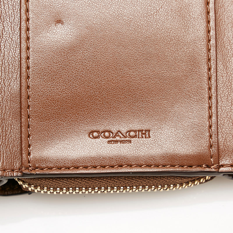 コーチ シグネチャー 三つ折り財布 ブラウン ベージュ PVC レザー レディース COACH 【中古】