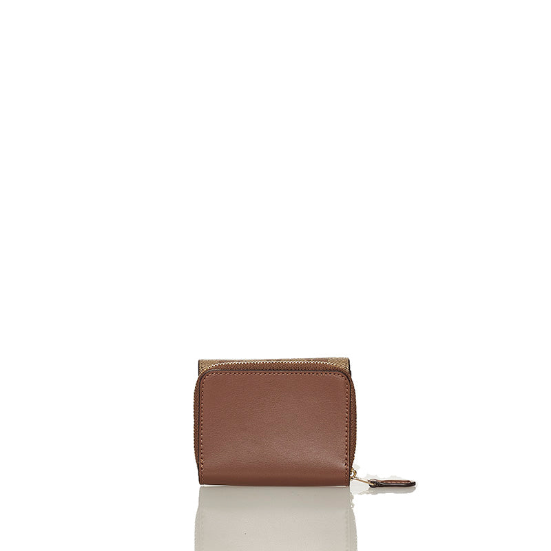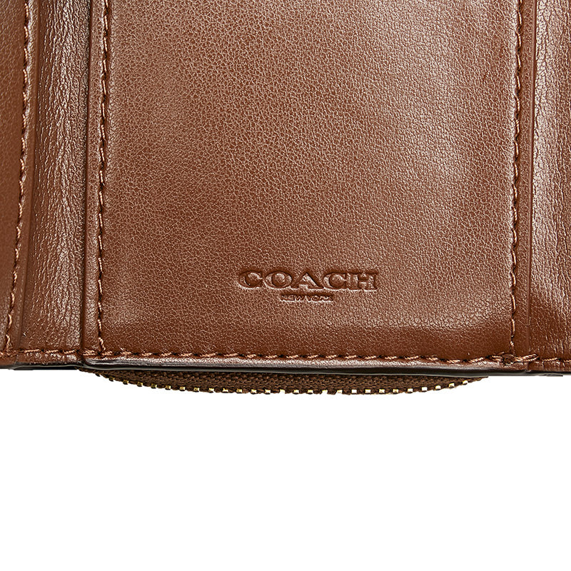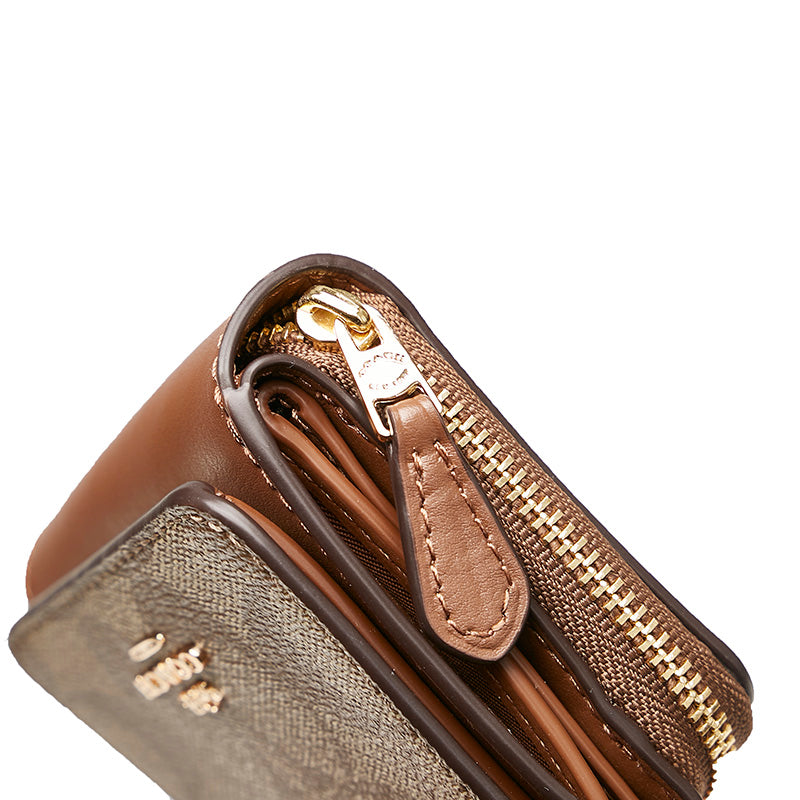 コーチ シグネチャー 三つ折り財布 ブラウン ベージュ PVC レザー レディース COACH 【中古】