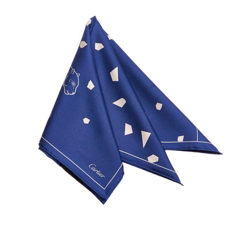 カルティエ ネイビー シルク ハンカチ レディース CARTIER 【中古】