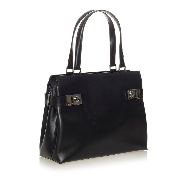 サルヴァトーレフェラガモ ガンチーニ DY-21 0166 ブラック レザー ハンドバッグ レディース Salvatore Ferragamo 【中古】
