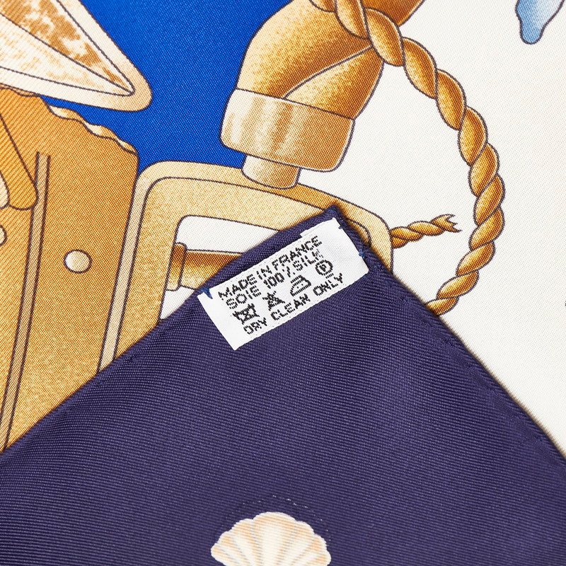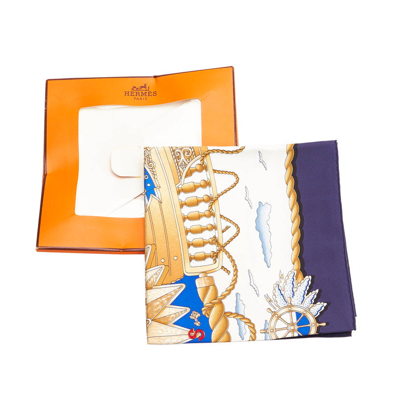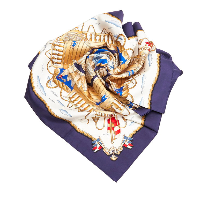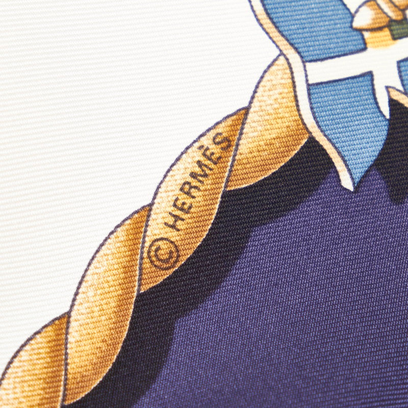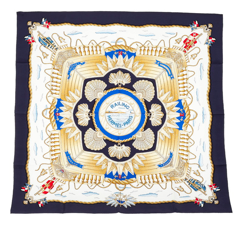 カレ90 RAILING 船の手摺 スカーフ ネイビー ホワイト シルク レディース 【中古】