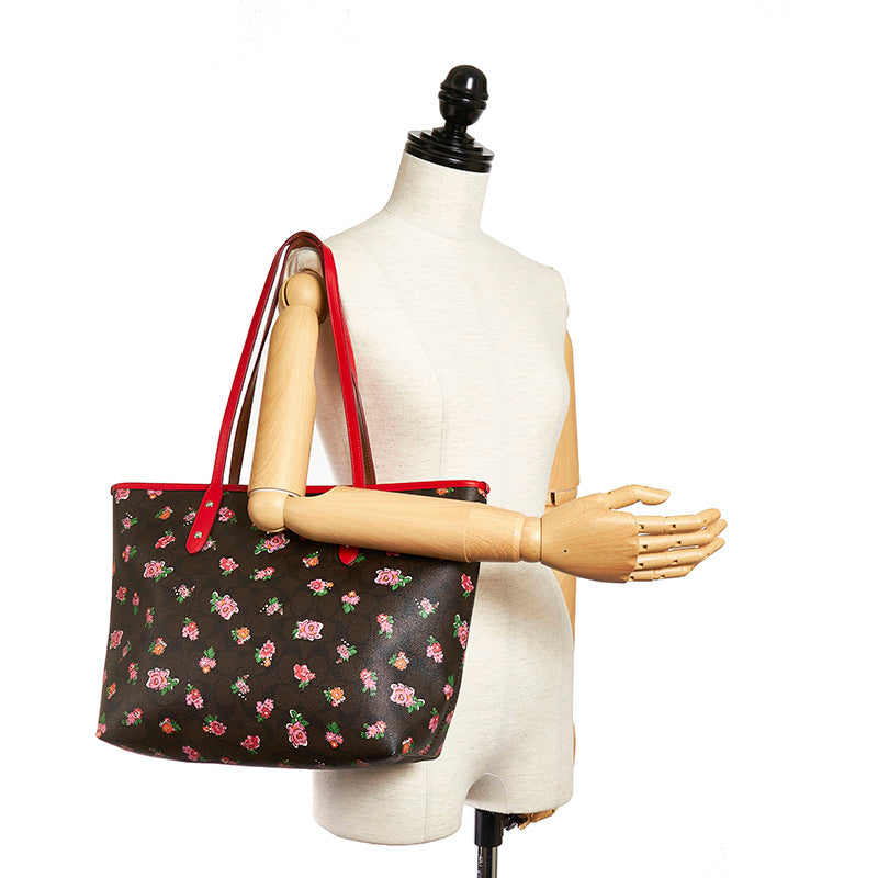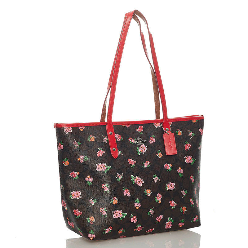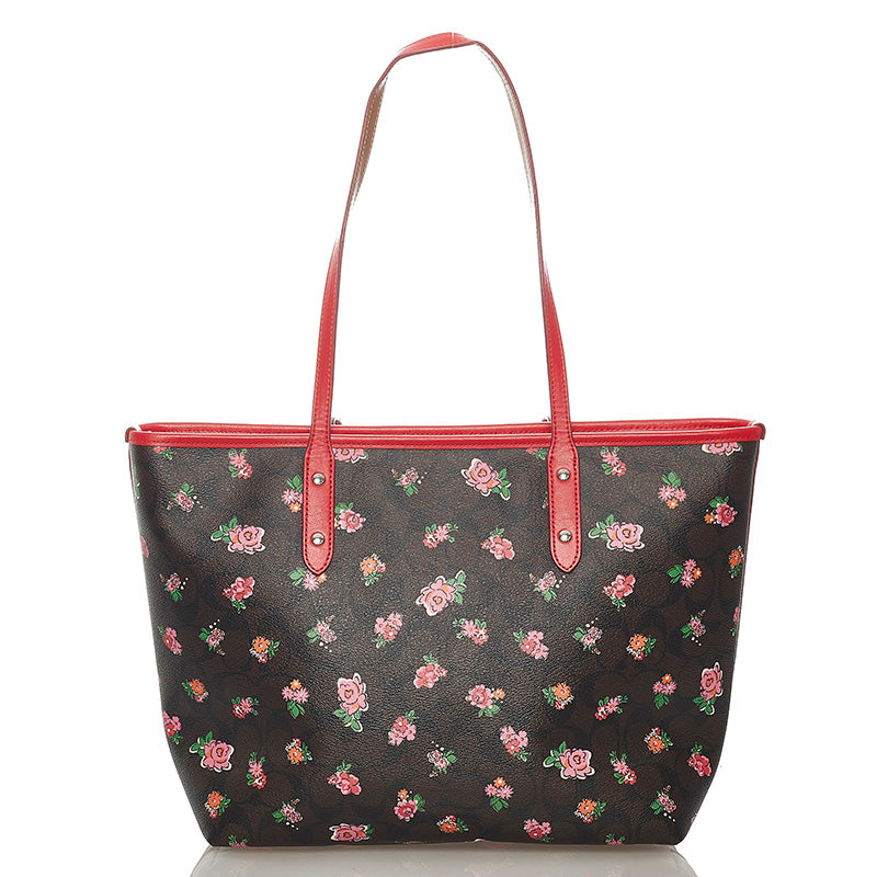 コーチ シグネチャー トートバッグ F57888 ブラウン レッド PVC レザー レディース COACH 【中古】