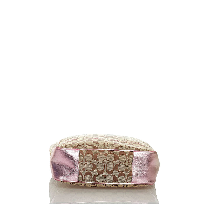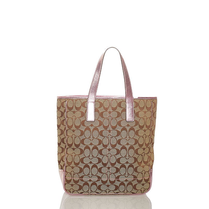 コーチ トートバッグ ベージュ ピンク キャンバス レザー レディース COACH 【中古】