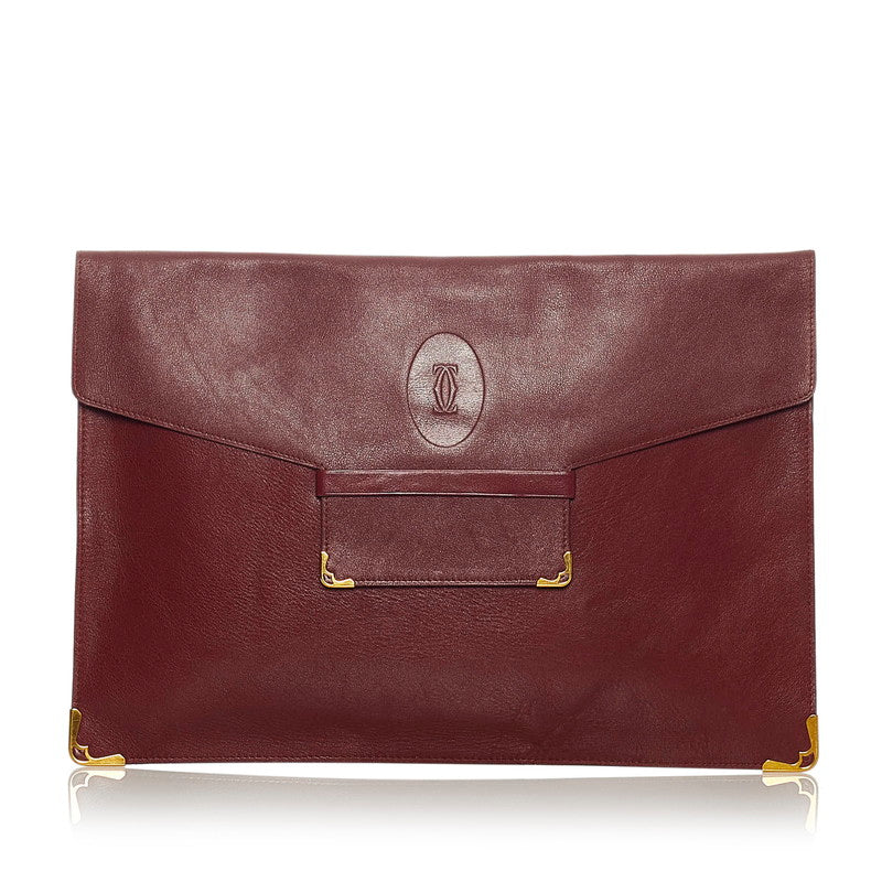カルティエ ワインレッド レザー クラッチバッグ レディース CARTIER 【中古】