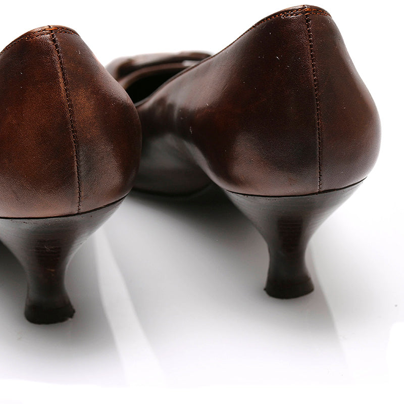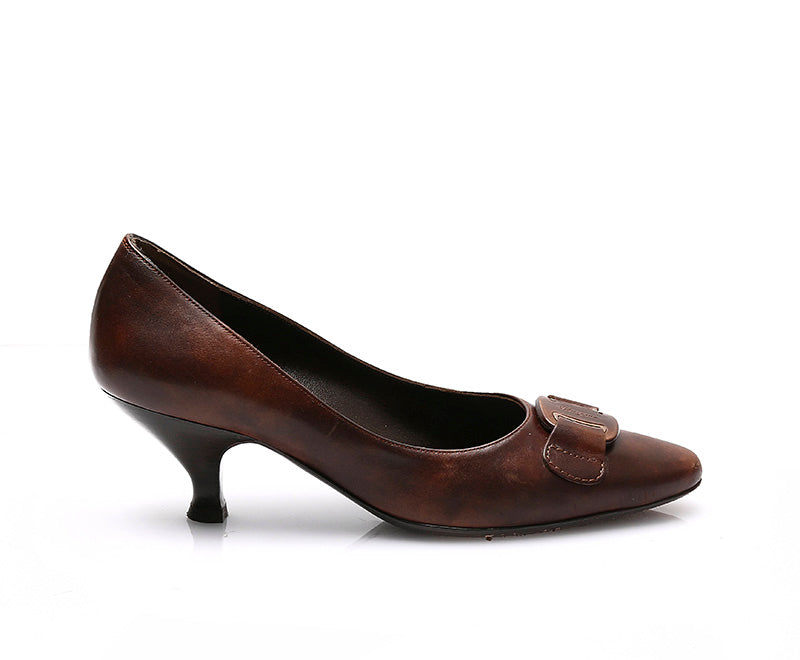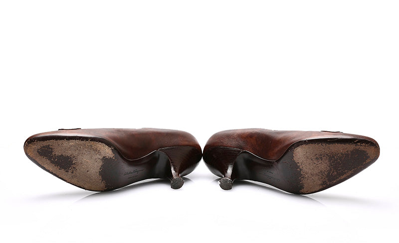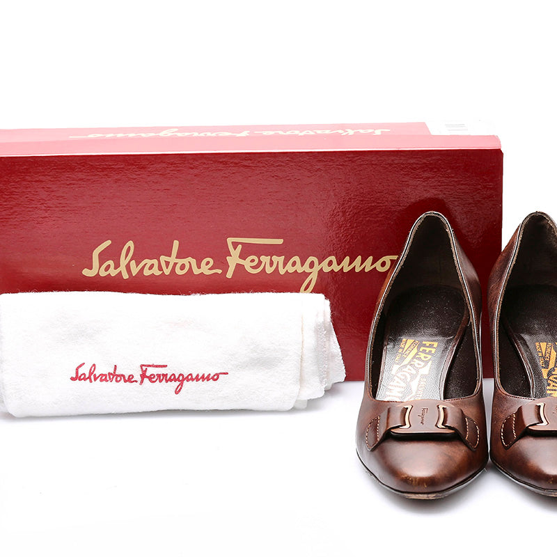 サルヴァトーレフェラガモ パンプス ブラウン レザー レディース Salvatore Ferragamo 【中古】
