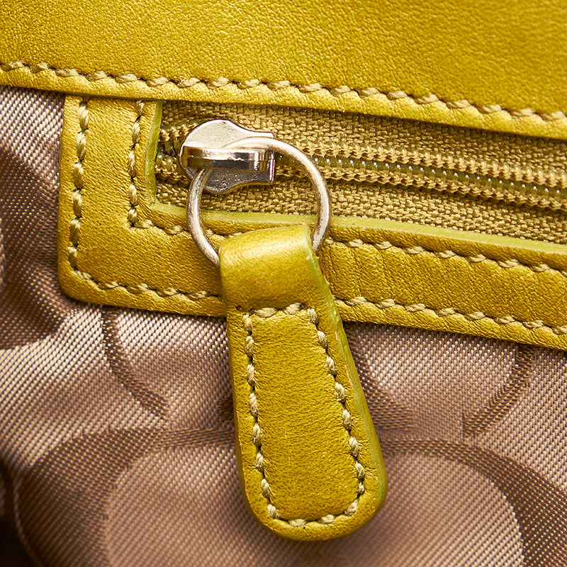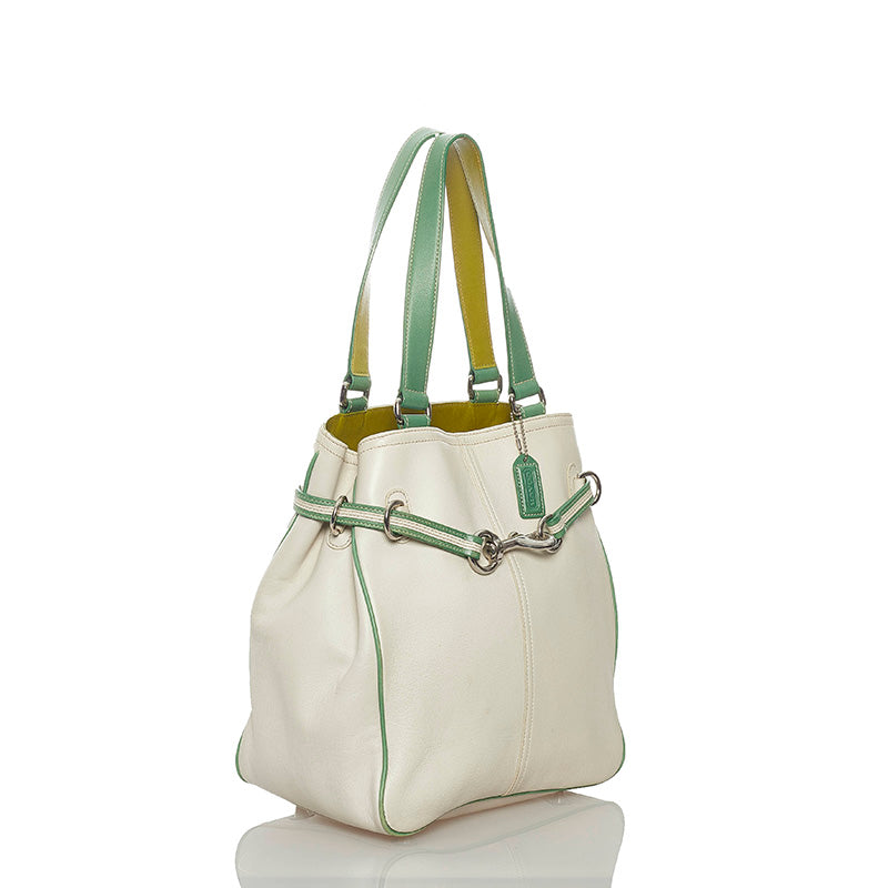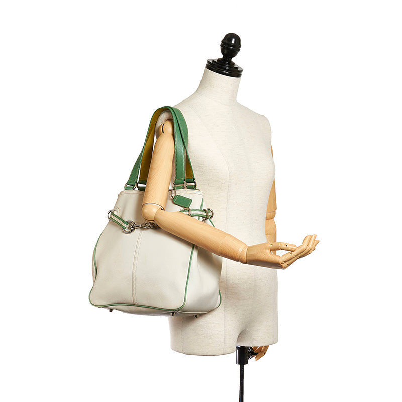 コーチ トートバッグ 7532 ホワイト グリーン レザー レディース COACH 【中古】