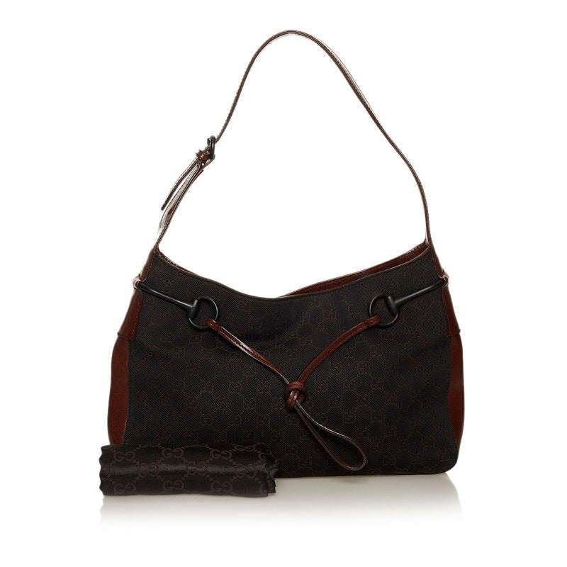 グッチ GGキャンバス ホースビット ワンショルダー 101975 ダークブラウン キャンバス レザー レディース GUCCI 【中古】